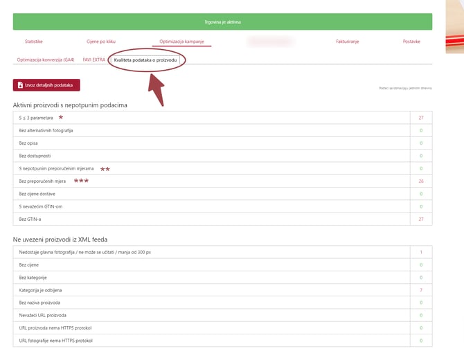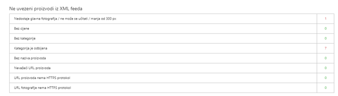 S time što prikazujemo detaljne podatke o vašem XML feedu, dobiti ćete momentalan uvid u njegovu kvalitetu. Idealan i poželjan stav ovog izvještaja je kada su svuda zelene nule (0).