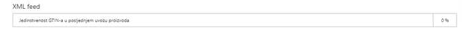Ovdje možete vidjeti postotak jedinstvenih GTIN kodova u usporedbi s sveukupnim brojem proizvoda u XML feedu. U tom slučaju, postotak jedinstvenosti će se smanjiti. Postotak se računa od svih proizvoda u feedu, ne samo aktivnih proizvoda prikazanih u katalogu.